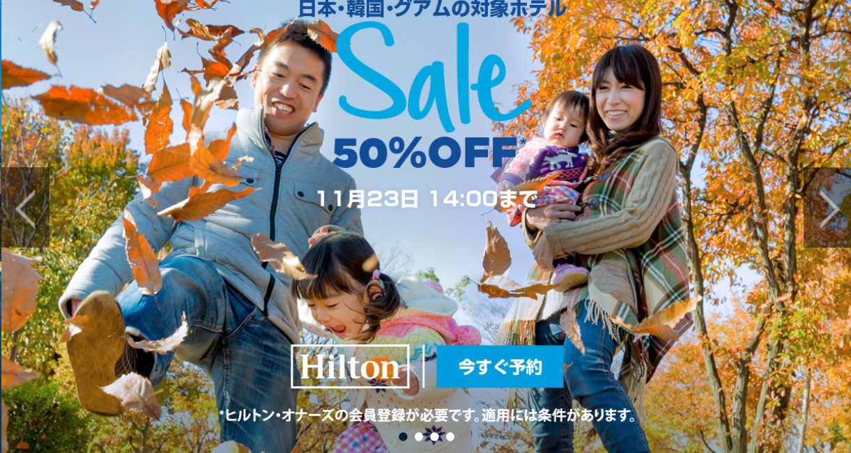 Black Fridayセールではありませんが、23日の14時までヒルトン50%オフセールが開催されています。