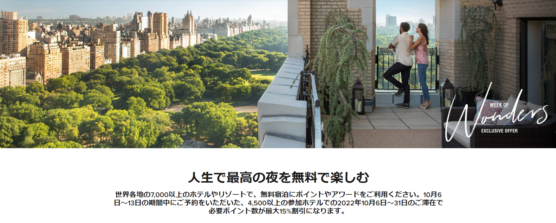 今回の100%ボーナスセールを利用すると、超繁忙期にお得にホテル宿泊が可能です。