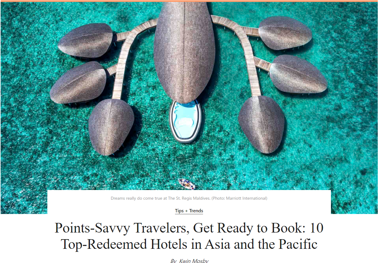 マリオットから2019年にポイント無料宿泊で利用されたホテルランキング20が発表されました!!